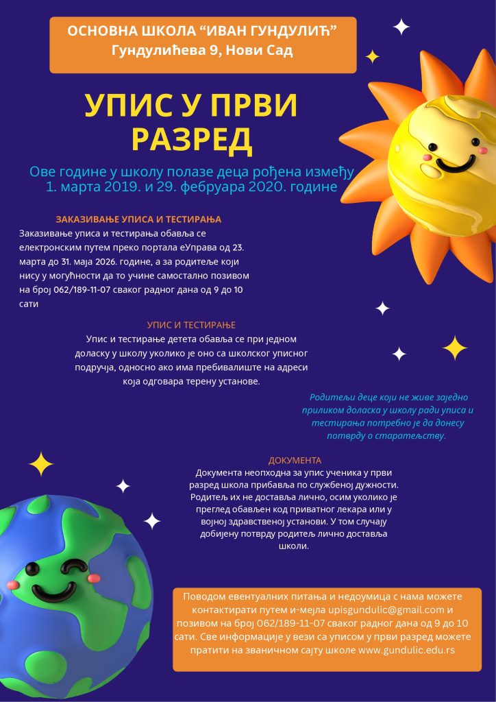 Више...Упис у први разред 2024.