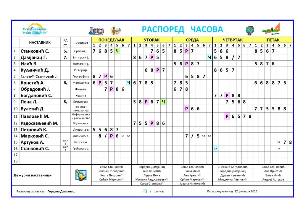 На следећим линковима можете видети и преузети нови распоред часова за online наставу који ће важити до краја првог полугодишта: